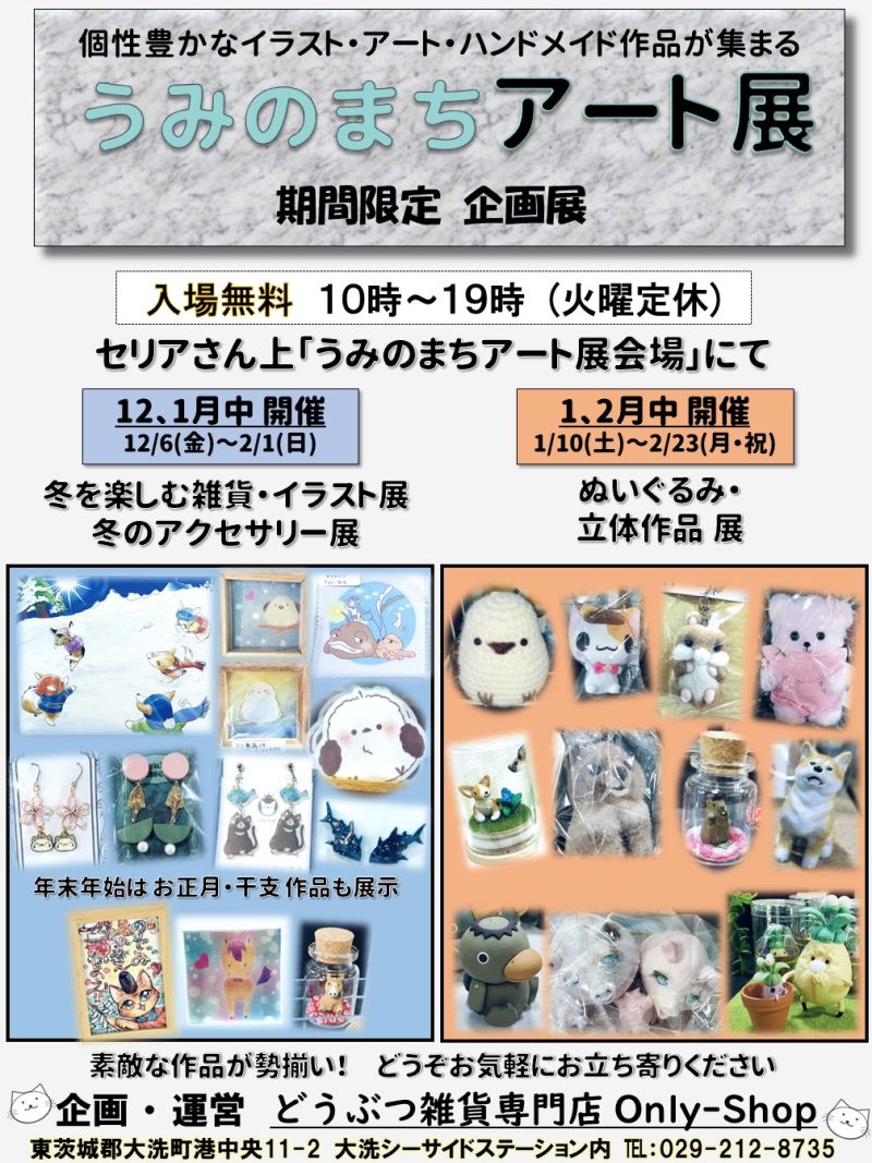ナビアプリで「動物雑貨専門店 OnlyShop」や「大洗シーサイドステーション」とご検索下さい。